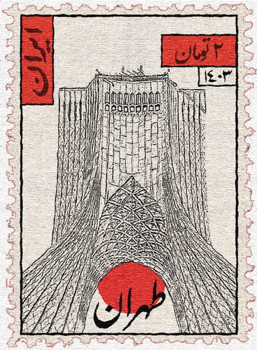 برچسب حرارتی لباس و کیف طرح تمبر تهران برند دیجی تیشرت