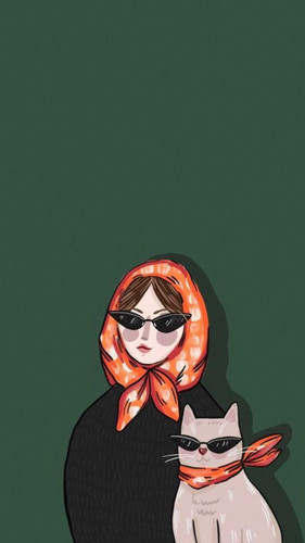 برچسب حرارتی لباس و کیف طرح دختر و گربه برند دیجی تیشرت