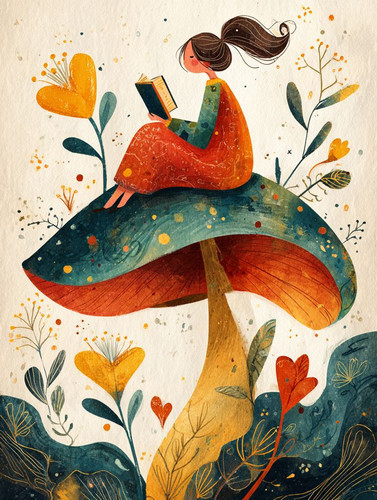 برچسب حرارتی لباس و کیف طرح نقاشی دختر و قارچ برند دیجی تیشرت