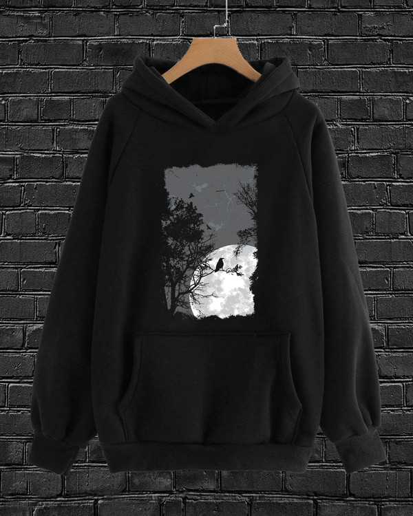 هودی مردانه پنبه ای پشت کرک طرحدار طرح منظره و پرنده برند دیجی تیشرت