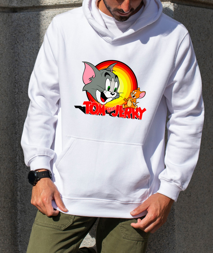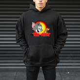 هودی مردانه پنبه ای پشت کرک طرحدار طرح تام و جری برند دیجی تیشرت