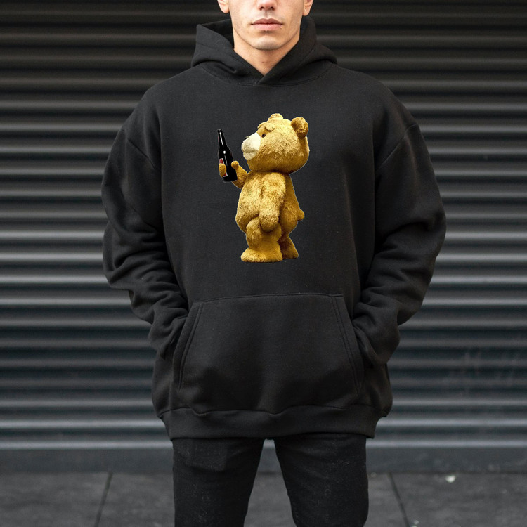 هودی مردانه پنبه ای پشت کرک طرحدار طرح خرس تدی سایزبندی برند دیجی تیشرت