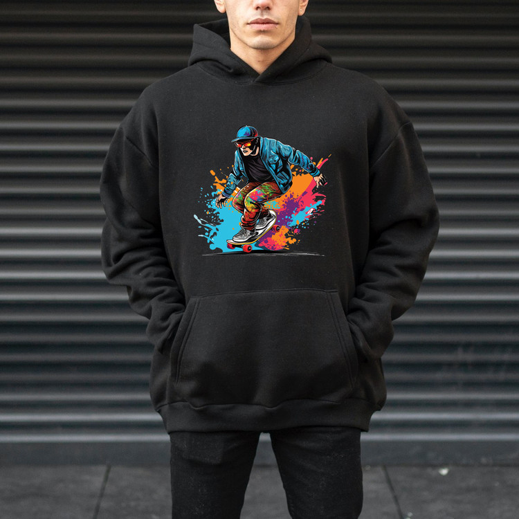 هودی مردانه پنبه ای پشت کرک طرحدار اسکیت برد سایزبندی برند دیجی تیشرت