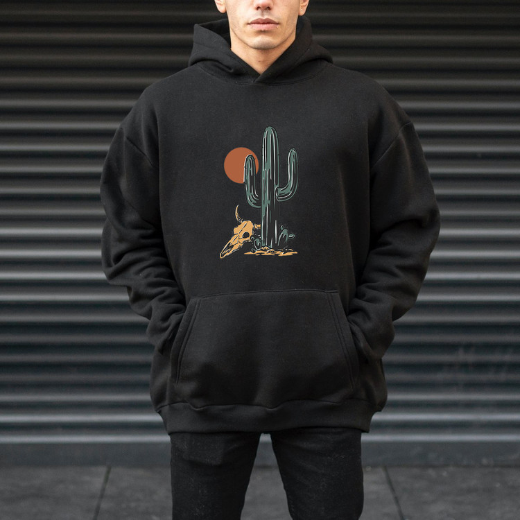 هودی مردانه پنبه ای پشت کرک طرحدار طرح کاکتوس سایزبندی برند دیجی تیشرت