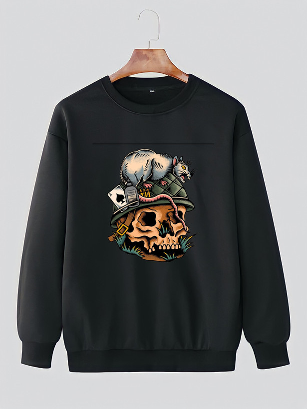 پلیور دورس مردانه پنبه ای پشت کرک طرحدار طرح اسکلت برند دیجی تیشرت