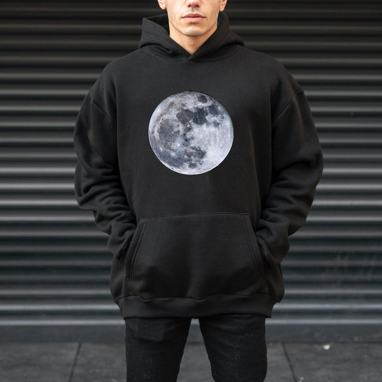 هودی مردانه پنبه ای پشت کرک طرحدار طرح ماه کامل برند دیجی تیشرت