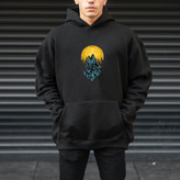 هودی مردانه پنبه ای پشت کرک طرحدار طرح گرگ و ماه برند دیجی تیشرت