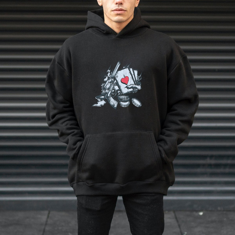 هودی مردانه پنبه ای پشت کرک طرحدار طرح اسلحه پوکر سایزبندی برند دیجی تیشرت