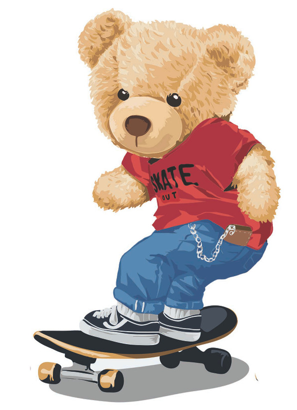 برچسب حرارتی لباس طرح تدی روی اسکیت برد برند دیجی تیشرت