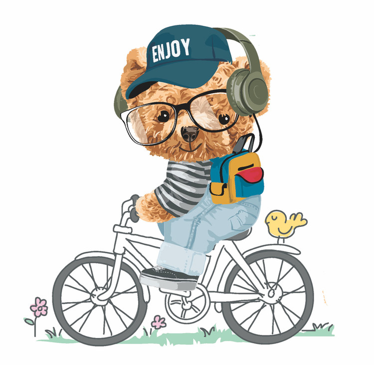 برچسب حرارتی لباس طرح تدی با دوچرخه برند دیجی تیشرت