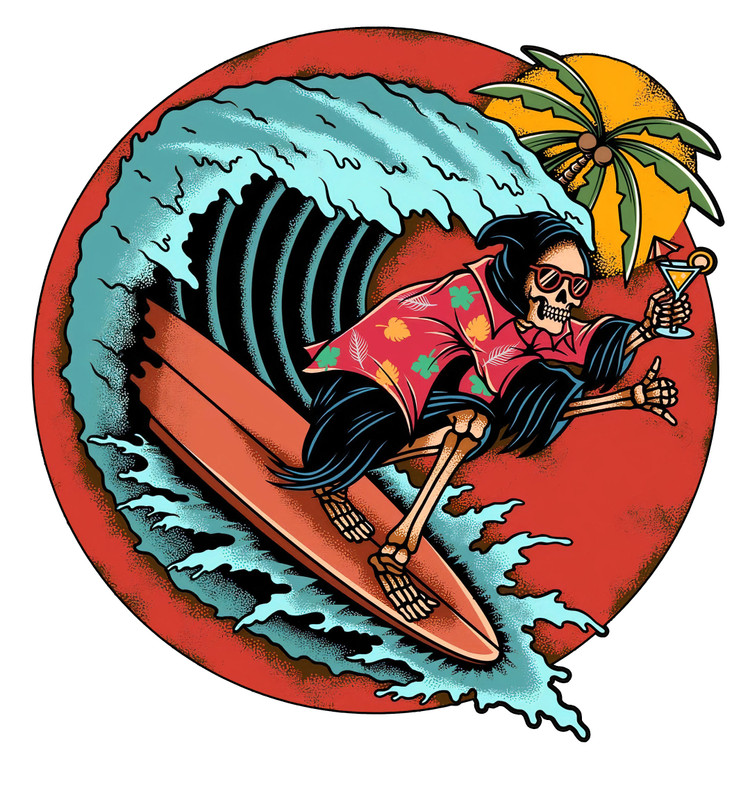 برچسب حرارتی لباس طرح اسکلت موج سوار برند دیجی تیشرت