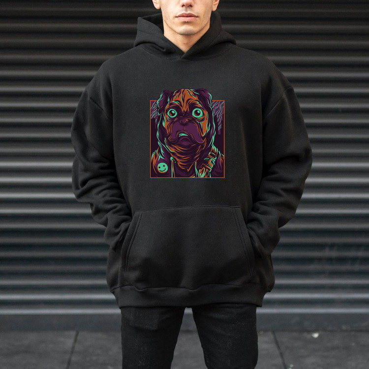 هودی مردانه پنبه ای پشت کرک طرحدار طرح سگ بولداگ دیجی تیشرت