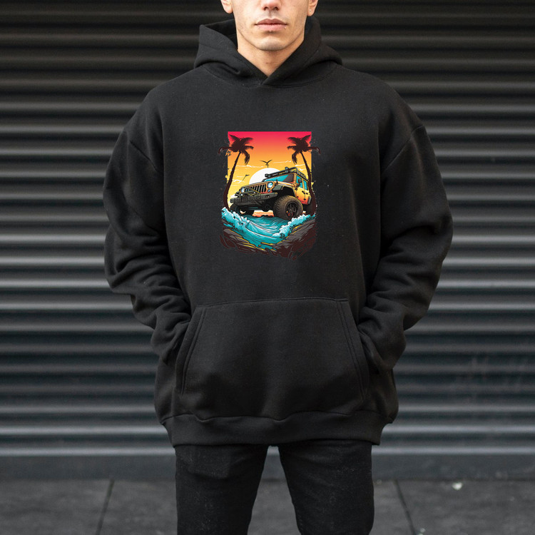 هودی مردانه پنبه ای پشت کرک طرحدار طرح جیپ آفرود ساحل دیجی تیشرت