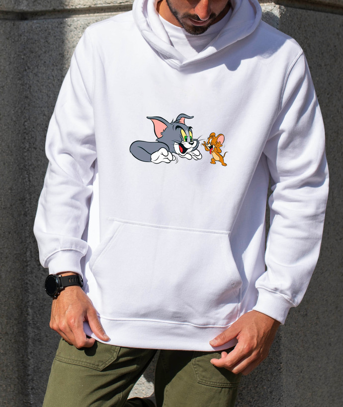 هودی مردانه پنبه ای پشت کرک طرحدار طرح تام و جری موش و گربه دیجی تیشرت