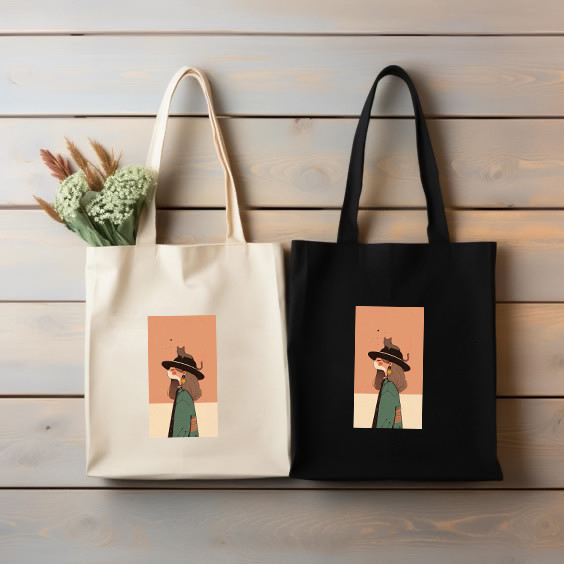 توت بگ چاپی طرح دختر کلاه دار گربه پارچه متقال برند دیجی تیشرت