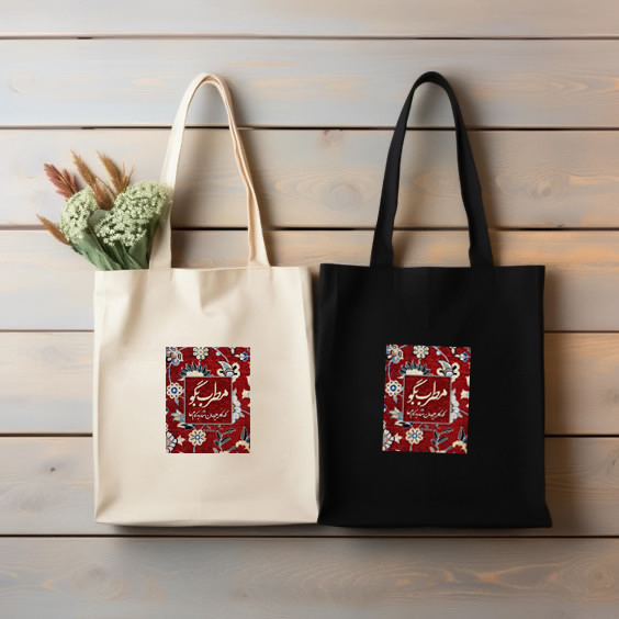 توت بگ چاپی طرح نوشته فرش پارچه متقال برند دیجی تیشرت