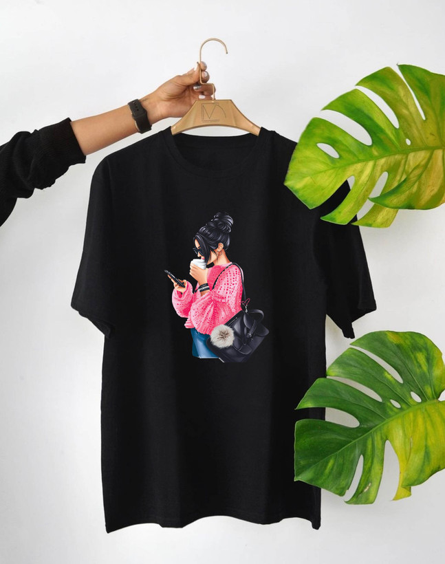 تیشرت زنانه پنبه طرحدار طرح دختر برند دیجی تیشرت