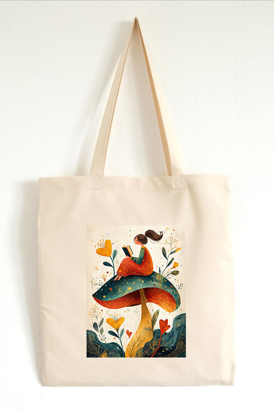 توت بگ چاپی طرح نقاشی قارچ جنس کتان برند دیجی تیشرت