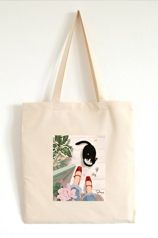 توت بگ چاپی طرح دختر و گربه جنس کتان برند دیجی تیشرت