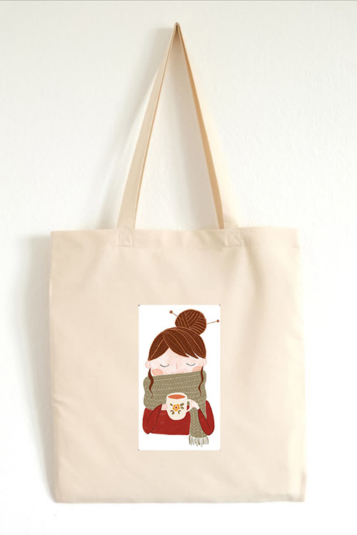توت بگ چاپی طرح دختر جنس کتان برند دیجی تیشرت