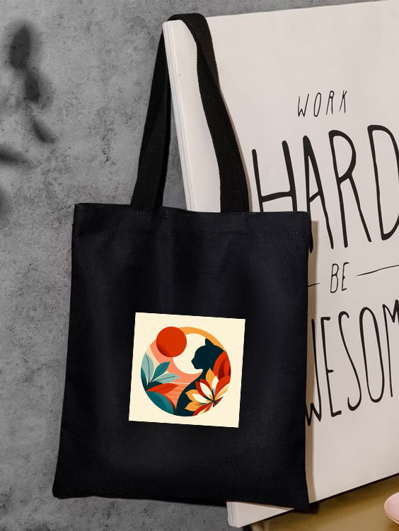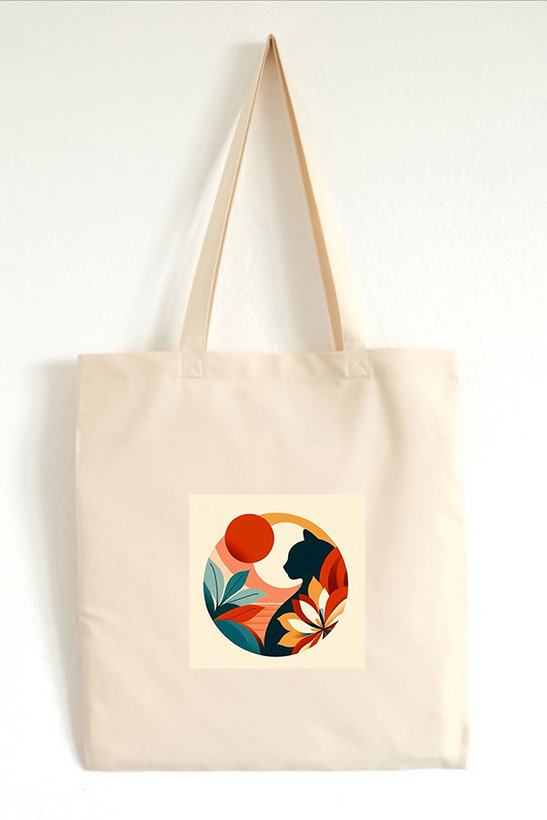 توت بگ چاپی طرح نقاشی گربه و ماه جنس کتان برند دیجی تیشرت