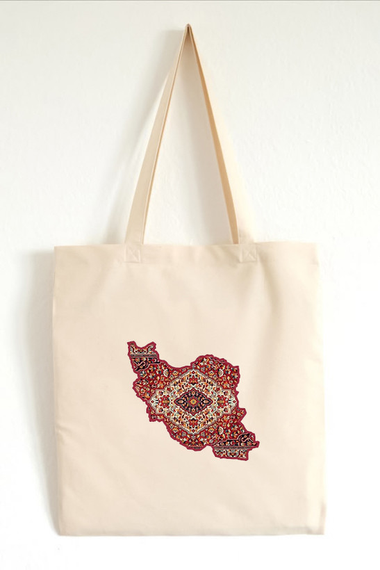توت بگ چاپی طرح ایران فرش ایرانی جنس کتان برند دیجی تیشرت
