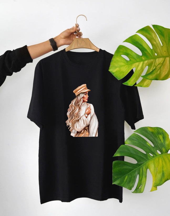 تیشرت زنانه پنبه طرحدار طرح دخترانه برند دیجی تیشرت