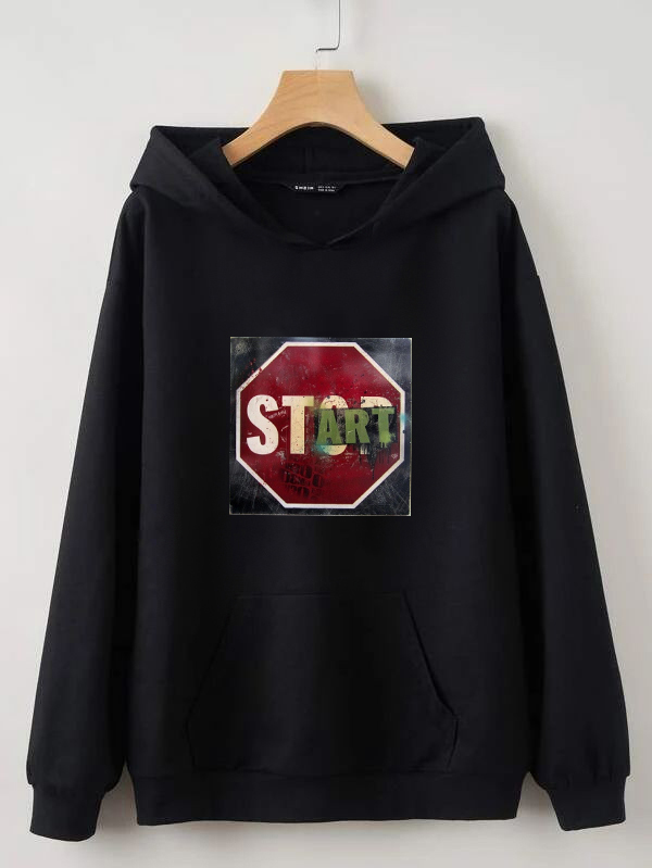 هودی مردانه پنبه ای پشت کرک طرحدار طرح stop start دیجی تیشرت